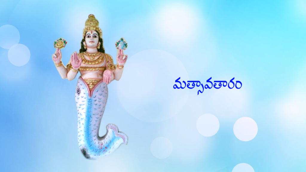 యుగాల్లో మొదటిదైన కృత యుగంలో సోమకుడనే రాక్షసుడు భ్రహ్మ దగ్గర ఉన్న వేదాల్ని దొంగిలిస్తాడు. అప్పుడు విష్ణువు సముద్రంలో దాక్కుని ఉన్న సోమకాసురుణ్ణి మత్స రూపంతో  వెదికి , పట్టుకొని సంహరిస్తాడు . జ్ఞాన నిధి అయిన వేద రాశిని మరల బ్రహ్మదేవుడికి ఇస్తాడు.