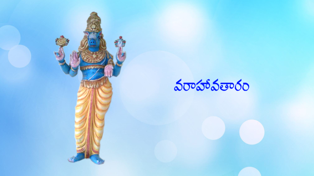 కృత యుగంలో హిరణ్యాక్షుడు అనే రాక్షసుడు లోకాల్ని బాధించేవాడు, ఈ రాక్షసుడు భూమిని పాతాళానికి నెట్టేసి , అల్లకల్లోలం చేస్తాడు. ఇది భరించలేక  భూదేవి విష్ణువుతో మొరపెట్టుకోగా, ఆయన వరాహావతారం లో వచ్చి హిరణ్యాక్షున్నీ చంపి భూదేవిని కాపాడుతాడు.