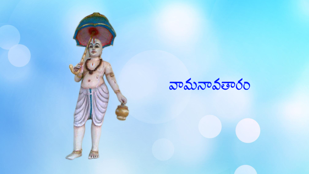 పూర్వం బలి చక్రవర్తి అనే రాక్షసుడు దేవతలపై దౌర్జన్యం చేసి స్వర్గాన్ని ఆక్రమిస్తాడు . రాక్షసులలో కూడా కొంతమందికి మంచి గుణాలు ఉంటాయి. బలిచక్రవర్తికి కూడా దానం చేసే మంచి అలవాటు ఉండేది. దేవతల కోరిక మేరకు విష్ణువు వామనావతారం ఎత్తాడు. వామనుడు అనగా పొట్టివాడు అని అర్థం. వామనుడు, యాగం చేస్తున్న బలిచక్రవర్తి ని మూడడుగుల స్థలం అడిగాడు. బలి చక్రవర్తి అందుకు అంగీకరిస్తాడు. అంతే! వామనుడు విశ్వమంతా వ్యాపిస్తాడు, ఒక అడుగుతో ఆకాశాన్ని, మరొక అడుగుతో భూమిని ఆక్రమిస్తాడు. మూడవ అడుగు బలిచక్రవర్తిపై పెట్టి పాతాళానికి పంపించేస్తాడు. అందుకే ఈయనను త్రివిక్రముడు అంటారు. త్రివిక్రముడు అంటే మూడు లోకాల్లో వ్యాపించినవాడు అని అర్థం.