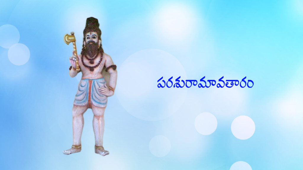ఈ అవతారం లో ఇరవై ఒక్క సార్లు దుర్మార్గులైన రాజులందర్నీ తన గండ్ర గొడ్డలితో చంపి భూభారం తగ్గించాడు. గండ్రగొడ్డలిని పరశువు అంటారు. ఈ అవతారంలో పరశువు ని చేతపట్టి పరశురాముడు అయ్యాడు.