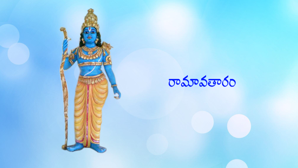 శ్రీరాముడు దశరథుడి కుమారుడు మరియు ఈ అవతారం గురించి మనందరికీ తెలుసు. రాముడి పట్టాభిషేక సమయానికి సవతి తల్లి కైకై అరణ్యవాసం చేయమని అడగటం, తండ్రిపై అభిమానంతో రాముడు సీతాసమేతంగా అడవులకు వెళ్ళటం, సీతను రావణుడు అపహరించటం తర్వాత రాముడు వానర సైన్యం సహాయంతో రావణుణ్ణి చంపుతాడు. ఇదంతా మనకు తెలిసిందే.